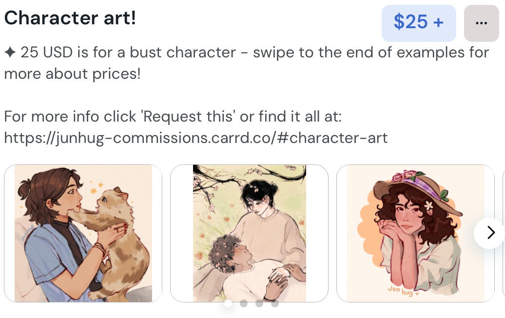 Below instructions (after clicking "Request this") write out your commission and add ref pics!✦ Write something that I can refer to in drawing. It can be as detailed as you want, although if you don't quite know where to start in the instructions